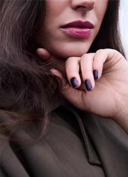 Ein makelloser Teint ist die Grundlage dieses Make-up Looks zwischen durchscheinendem Glow und mutiger Farbe. Der raffinierte Einsatz der drei Beauty Sticks schafft Tiefe, Dimension und ein Strahlen, das von innen zu kommen scheint. Die Augen sind nur subtil mit dem Automatic Pencil for Eyes K34 Cedar dem Eyeshadow Pen Golden Nutmeg und Perfect Volume Mascara in Braun betont, während der köstliche Farbton reifer Beeren den Mund in den Mittelpunkt rückt. Lush Lipstick Cassis pflegt die zarte Haut der Lippen samtweich und sorgt für einen starken Ausdruck, der im tiefen, mystischen Violett von Brilliant Nail Nightshade auf den Fingernägeln einen faszinierenden Gegenpart findet.